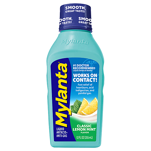 Mylanta Liquid Classic Lemon Mint Flavor Antacid+Anti Gas 12 Fl Oz