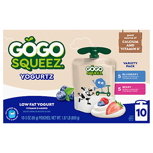 Go Go Squeez Low Fat Blueberry/Berry Yogurtz Variety Pack 10 Ea