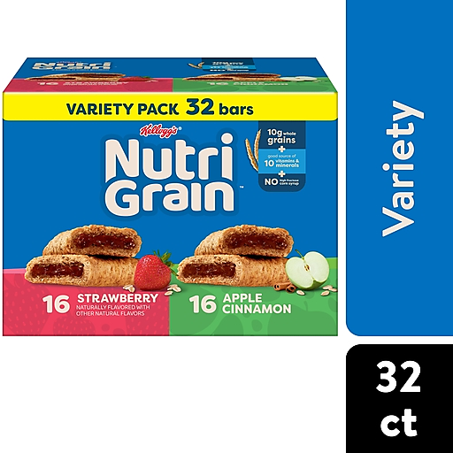 Nutri-Grain breakfast bars are your go-to for a handful of baked goodness! Made with 10g of whole grains, these deliciously simple bars help empower the whole family to win the day. This variety pack includes Strawberry and Apple Cinnamon flavors. They’re made with a tasty, chewy crust that holds yummy, sweet filling inside. Each breakfast bar contains 10 vitamins and minerals per serving, including a good source of calcium and iron, and has no high fructose corn syrup; Grab one in the morning, as an afternoon snack, or on the go. With delicious flavor and feel-good ingredients, they’re a wholesome snack for any time of day. Pack snacks for the bus on the way to school, add a few bars to your work bag for an office snack, and stock your pantry for convenient, crave-worthy snacks for the whole family. Grab a bar for flavorful energy matched up with an irresistible taste that everyone loves. With these perfectly baked snack bars, you’ll be prepared for whatever the day brings.