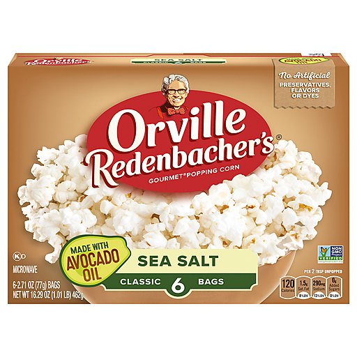 Orville Redenbacher’s Classic Sea Salt Popcorn With Avocado Oil Microwave Popcorn is a delicious and premium microwave popcorn. Popped with 100% avocado oil and seasoned with sea salt, this popcorn snack is great when you’re craving popcorn. It is light and fluffy, with a delicious crunch. Orville Redenbacher’s Classic Sea Salt Flavored Popcorn is made with 100% whole grain popcorn kernels and can be enjoyed as gluten free snacks. This popcorn snack contains no artificial preservatives, no flavors and no dyes. Ready in minutes, simply follow the directions on the microwavable popcorn bags for warm, freshly popped popcorn anytime you want. Enjoy this Orville Redenbacher’s popcorn for TV and movie snacks, game nights or anytime popcorn cravings strive for delicious salty snacks. It’s the perfect microwave popcorn to add a pop of fun to every occasion. Can’t get enough popcorn? Explore Orville Redenbacher’s other microwave popcorn flavors, popcorn seasoning and kernels for a gourmet popcorn experience. Orville Redenbacher’s isn’t just a name, it’s a promise of excellence and authenticity.